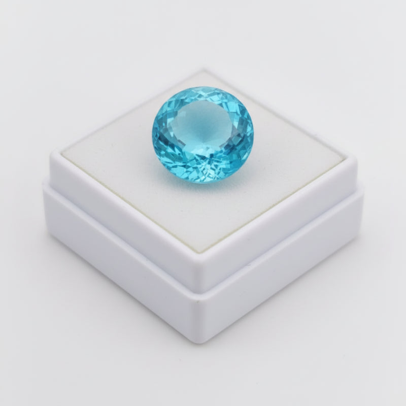 Experience the mesmerizing brilliance of our 29.50-Carat Natural Swiss Blue Topaz. Sourced directly from the mineral-rich mines of Brazil, this gemstone features an electric blue hue that captures light from every angle. Its expert (Round) cut enhances its natural sparkle, making it a perfect center stone for high-end jewelry or a valuable addition to any gemstone collection.