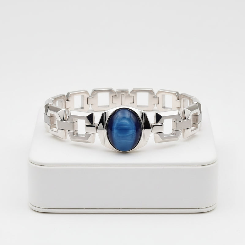 • Signature Bracelet Design: As seen in the image, this stone is perfect for a Geometric Link Bracelet. This design is masculine, modern, and crafted with substantial silver weight for a premium feel.